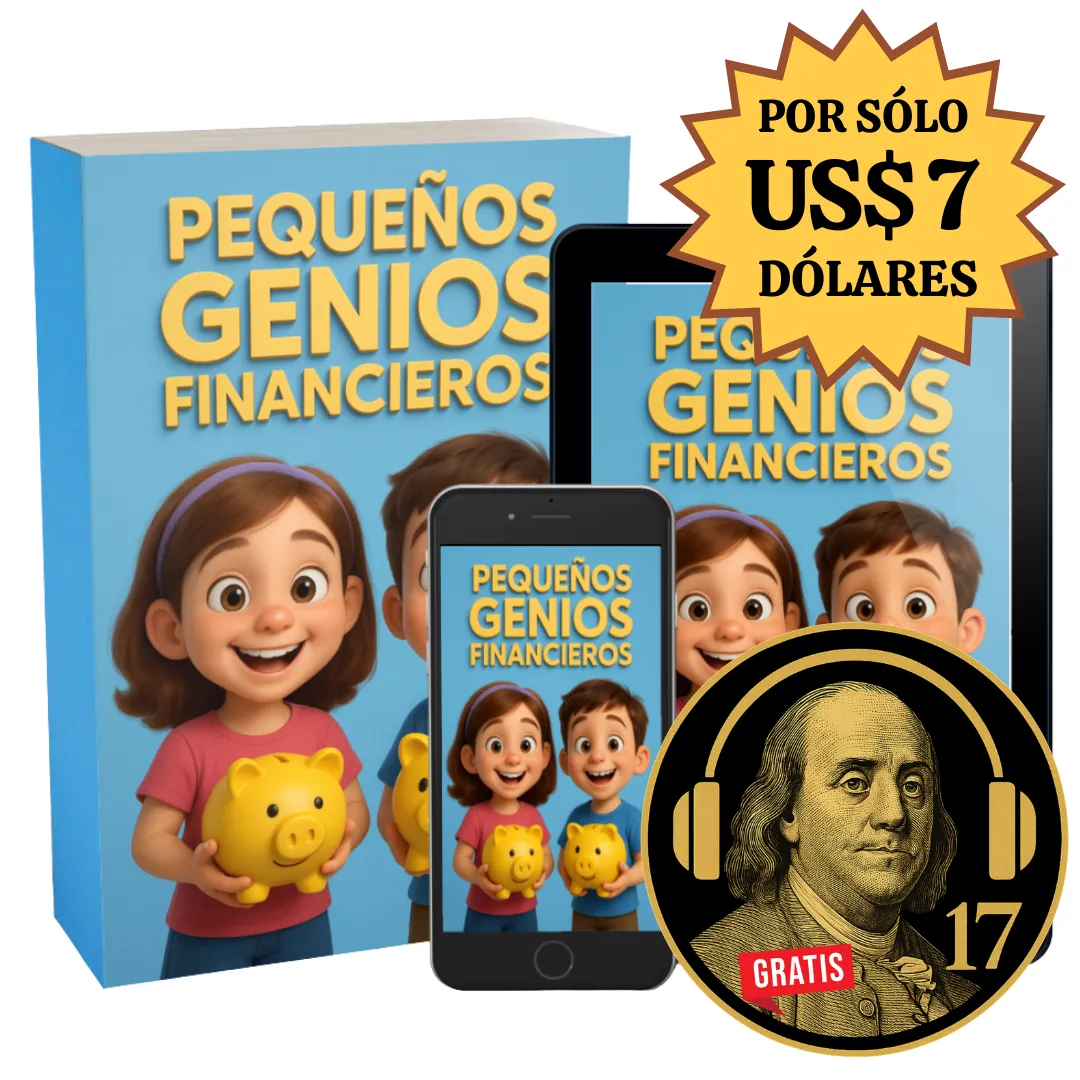 “Pequeños Genios Financieros” les enseña desde pequeños lo que a ti nadie te enseñó: cómo manejar el dinero con inteligencia. Es más que un curso… es un legado.
